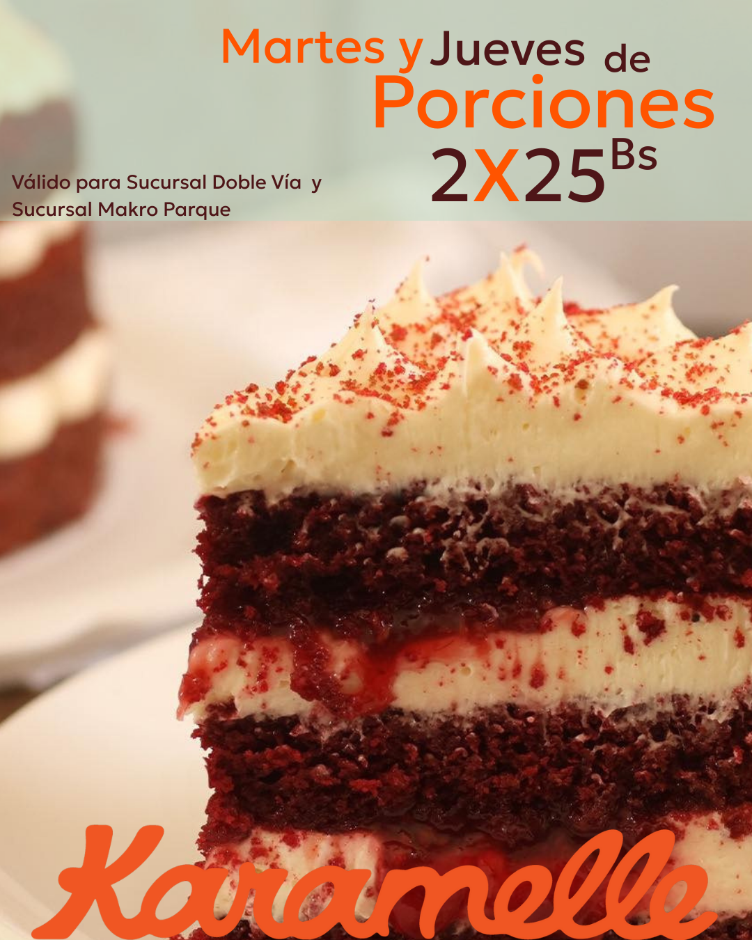 🎉¡TODOS los JUEVES tenemos promoción en Porciones 2 x 25 bs.!! 🎉🍰
