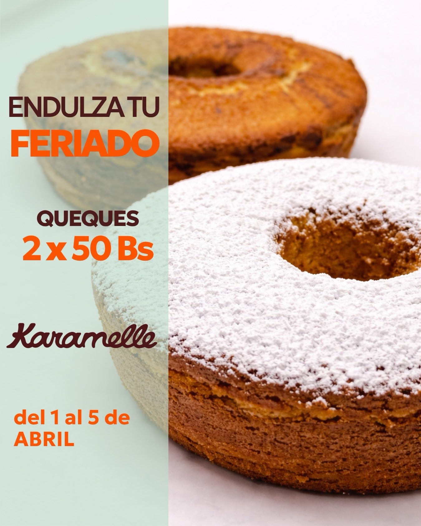El plan perfecto para este feriado es disfrutar de nuestros deliciosos Queques, por eso te traemos la promoción 2 Queques x Bs.50.