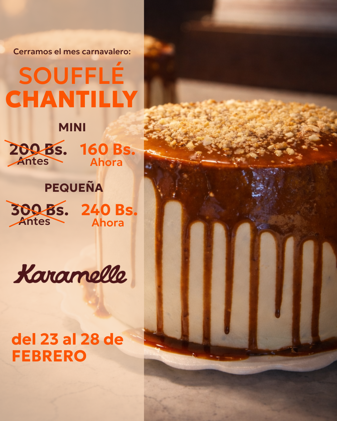 Cerramos el mes carnavalero como se debe… con nuestro Soufflé Chantilly bañado en puro antojo! 🎉🎂